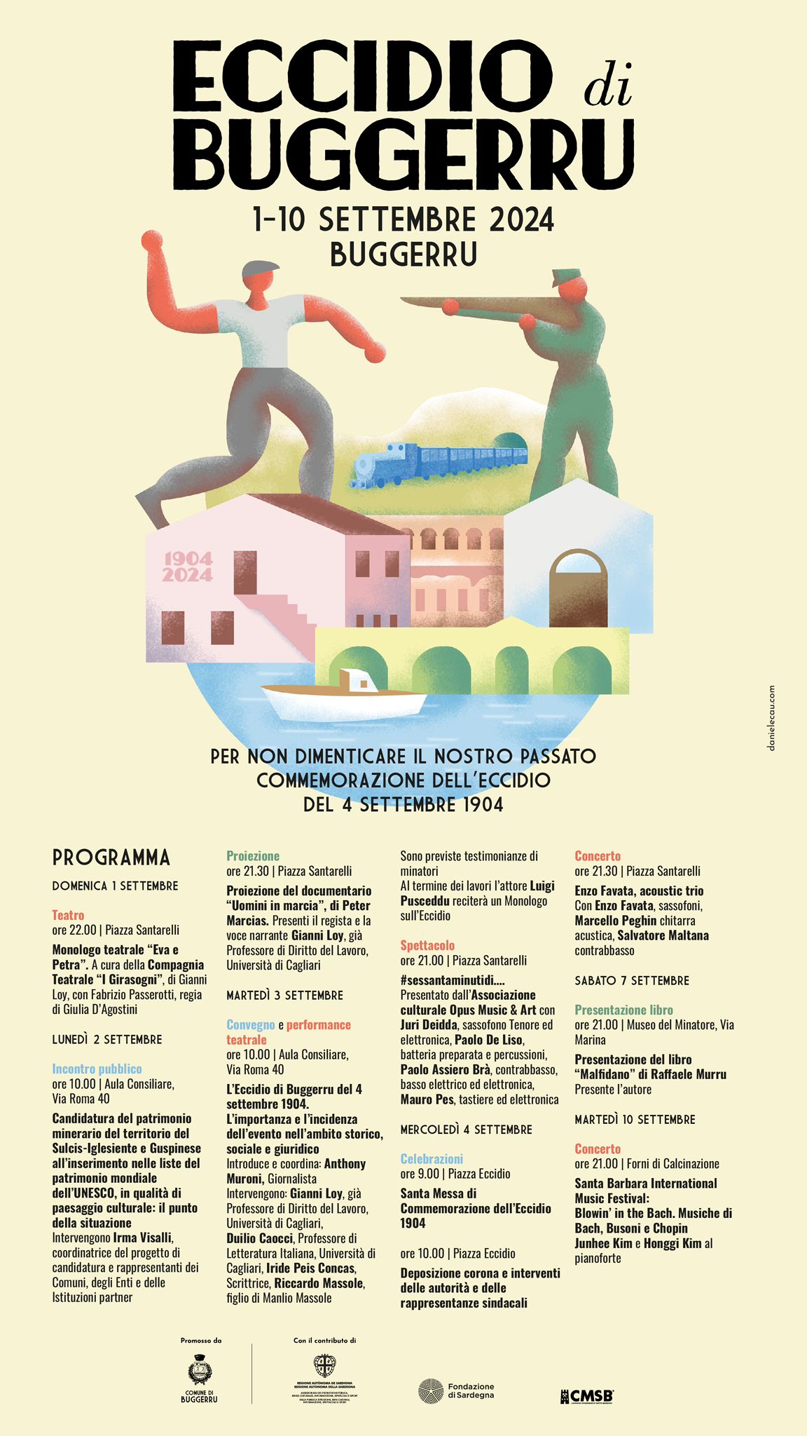 Inizieranno il 1 settembre gli appuntamenti promossi dal Comune di Buggerru con il contributo dell’assessorato della pubblica istruzione della Regione Sardegna, la Fondazione di Sardegna e la Fondazione Cammino di Santa Barbara dedicati all’evento che è passato alla storia come “Eccidio di Buggerru”.